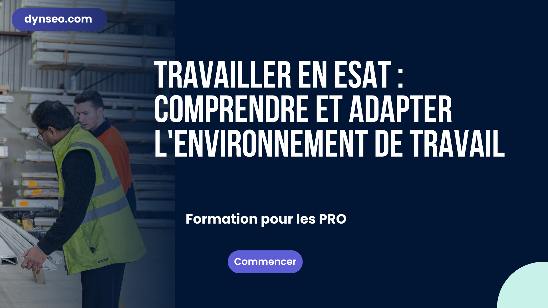 Cette formation de 4 heures s'adresse à tous les professionnels exerçant en établissement médico-social : moniteurs d'atelier, éducateurs spécialisés, AMP/AES, coordinateurs, direction et personnel administratif. L'ESAT est un environnement de travail singulier qui combine des impératifs de production et des missions d'accompagnement humain. Comprendre ce cadre, connaître les profils des travailleurs et savoir adapter son approche au quotidien est indispensable pour tout professionnel qui y exerce, quel que soit son rôle. Cette formation donne les clés fondamentales pour exercer avec efficacité et bienveillance dans un ESAT : comprendre le cadre légal, reconnaître les profils des travailleurs, adapter sa communication et son accompagnement, prévenir les situations de tension et travailler en équipe pluridisciplinaire.