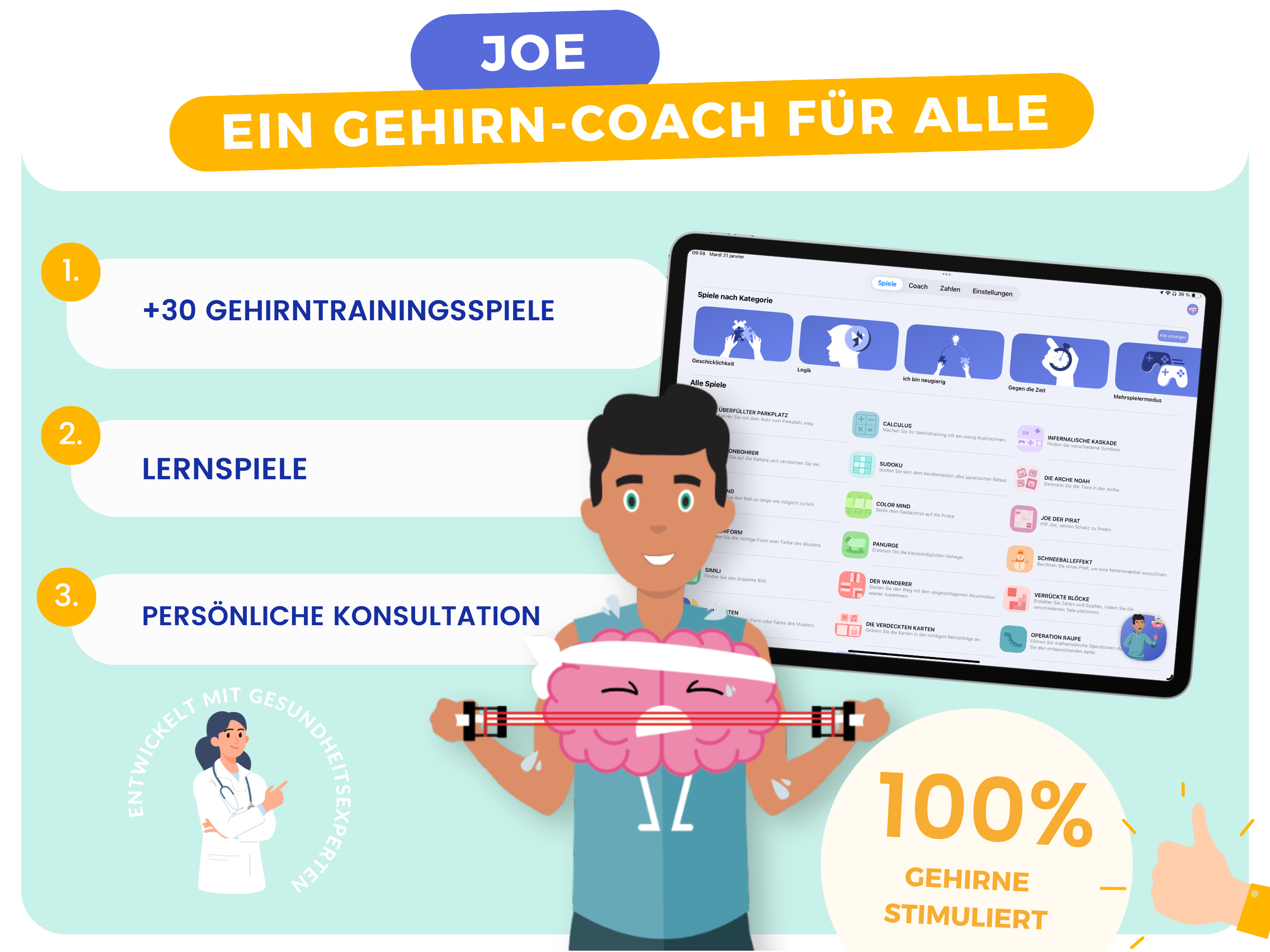 Für jüngere Personen mit leicht bis moderat ausgeprägtem Long COVID kann JOE, der Gehirncoach von DYNSEO abwechslungsreichere und stimulierende kognitive Übungen anbieten, immer unter Berücksichtigung der energetischen Grenzen und Vermeidung von kognitiver Überanstrengung.