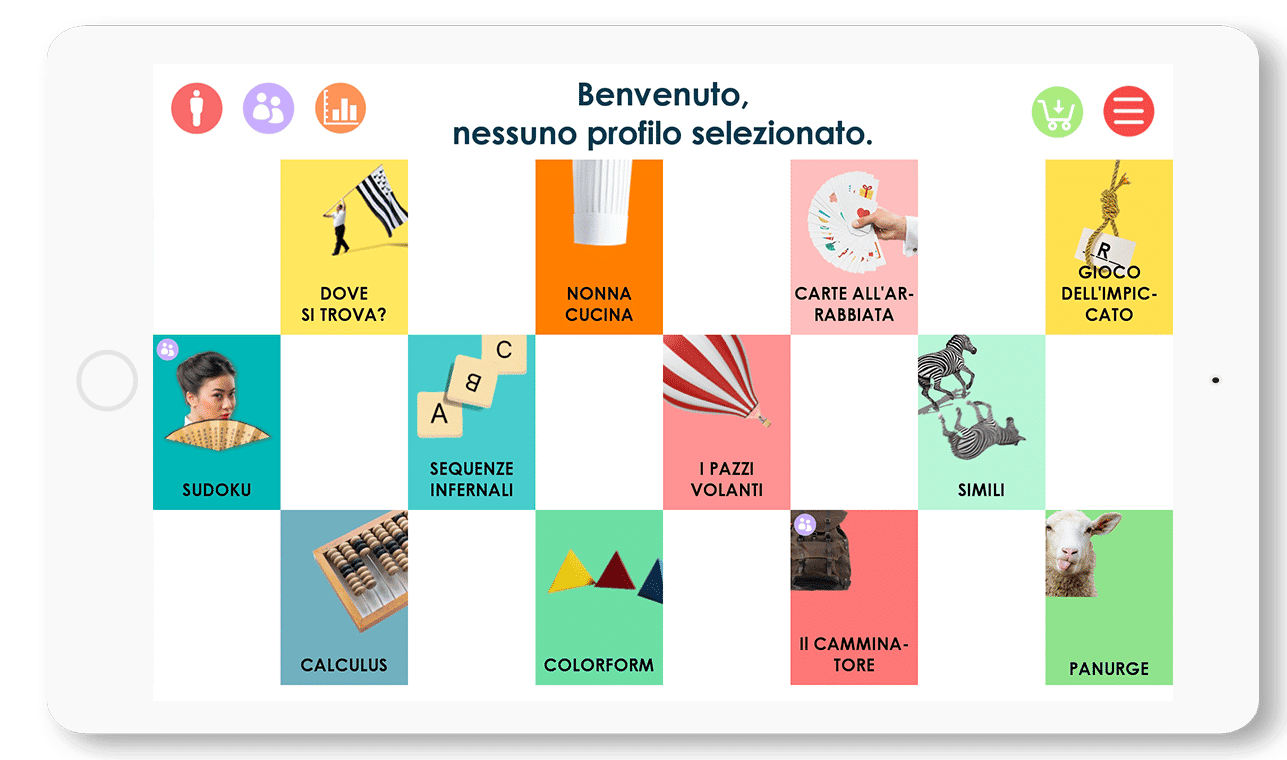 Poiché l'innovazione digitale è un'opportunità per tutti, e dato che gli operatori devono essere supportati più di tutti, abbiamo scelto di investire in questo campo. Sappiamo l'importanza di supportare gli operatori in vista di tutto quello che passano, e gli offriamo soluzioni concrete che gli permettono di interagire con i loro pazienti e fornirgli strumenti scalabili/adattabili.Con i nostri vari giochi di memoria disponibili su tablet e computer, tu, operatore, potrai utilizzare la tecnologia digitale al lavoro. Riuscirai ad aiutare i tuoi pazienti ad allenare le loro menti e svegliare i loro riflessi cerebrali attraverso diversi esercizi ben disegnati ed elaborati, che permettono alle persone che assisti di esercitarsi, risolvendo esercizi più o meno complicati.Sono disponibili due versioni: Stim’Art Sofia version, una versione creata per gli anziani con deficit cognitivi, e la versione Stim’Art Roberto da utilizzare come prevenzione.Il programma di Roberto