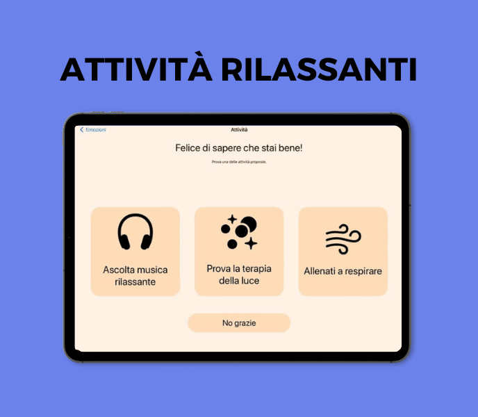 Nella finestra Emozioni, puoi scegliere diverse attività rilassanti come l’ascolto di suoni e musiche rilassanti.
