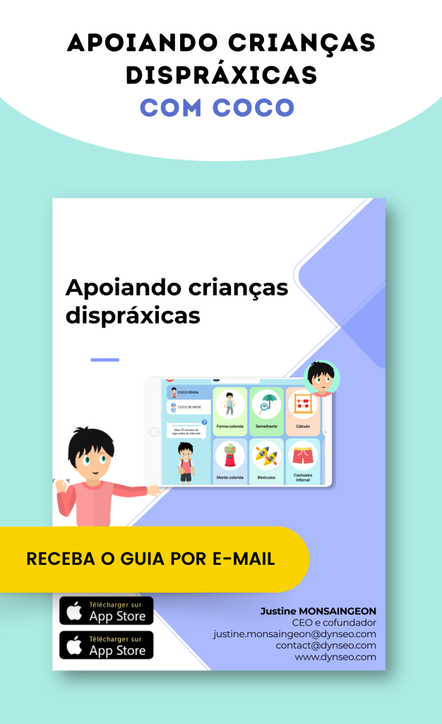 Coco pensa e o coco se mexe é uma aplicação repleta de jogos didácticos concebidos para estimular todas as funções cognitivas das crianças, ajudando-as no seu percurso de aprendizagem. Os jogos são meticulosamente adaptados para permitir a cada criança, independentemente do seu nível, reforçar as suas competências e progredir ao longo do tempo. Com uma pausa desportiva a cada 15 minutos, a aplicação dá às crianças a oportunidade de fazerem uma pausa bem merecida, ao mesmo tempo que trabalham as suas capacidades motoras. Esta abordagem holística promove um desenvolvimento global e equilibrado, tornando a aprendizagem divertida e gratificante.