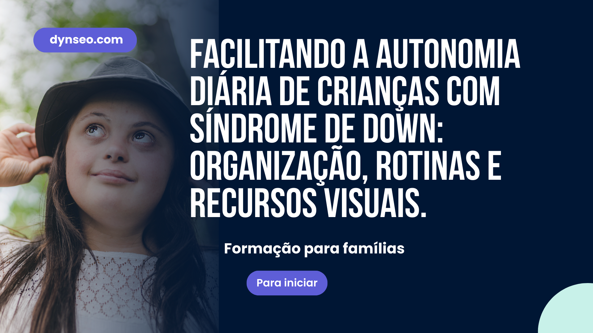 Para quem? Pais, familiares, cuidadores próximos de uma criança com síndrome de Down. Nenhum pré-requisito; abordagem acolhedora, progressiva e centrada nas pequenas vitórias do cotidiano.