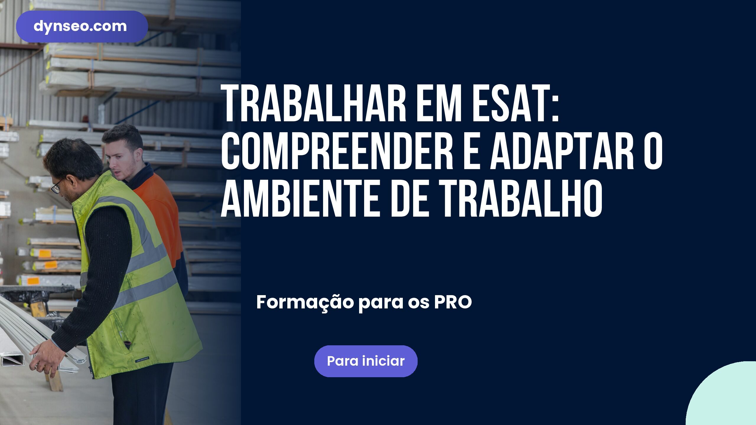 Esta formação de 4 horas destina-se a todos os profissionais que atuam em estabelecimentos médico-sociais: monitores de oficina, educadores especializados, AMP/AES, coordenadores, direção e pessoal administrativo. O ESAT é um ambiente de trabalho singular que combina imperativos de produção e missões de acompanhamento humano. Compreender este quadro, conhecer os perfis dos trabalhadores e saber adaptar sua abordagem no dia a dia é indispensável para todo profissional que atua nele, independentemente de seu papel. Esta formação oferece as chaves fundamentais para atuar com eficácia e benevolência em um ESAT: compreender o quadro legal, reconhecer os perfis dos trabalhadores, adaptar sua comunicação e seu acompanhamento, prevenir situações de tensão e trabalhar em equipe multidisciplinar.