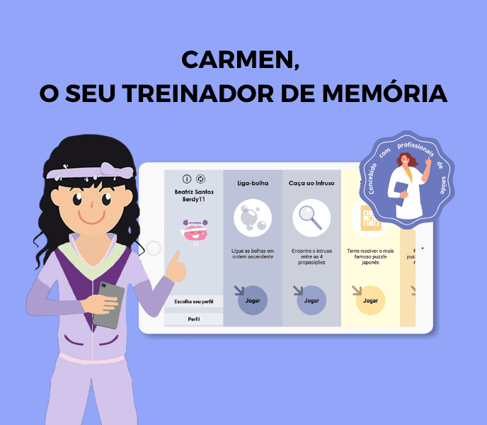 CARMEN, a sua treinadora de memória, treiná-la-á ao seu próprio ritmo.