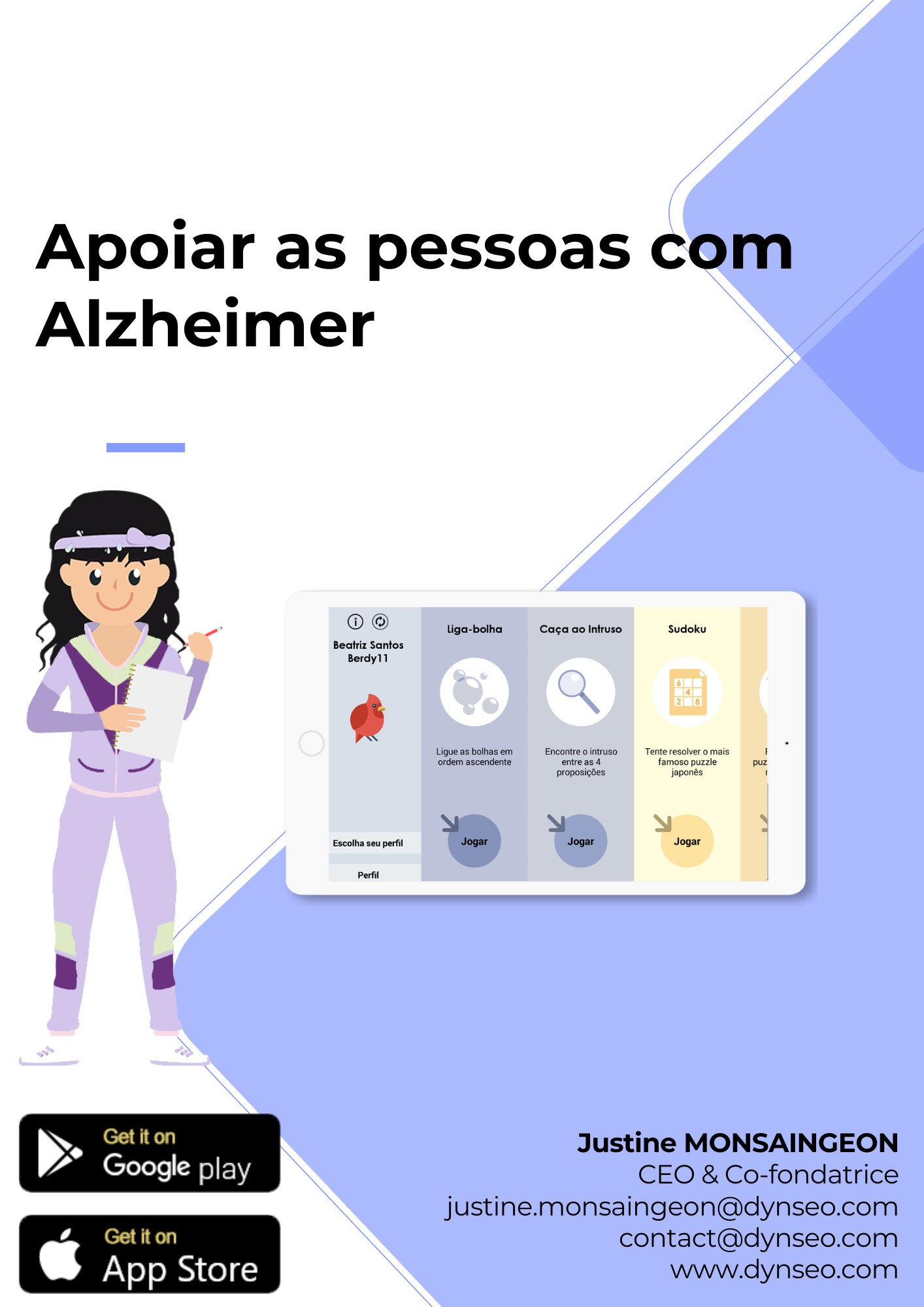 Mais de 30 jogos adaptados para estimular a memória, a atenção e a lógica. Uma interface simples e intuitiva, 3 níveis de dificuldade, e não é necessário WiFi para jogar. Experimente gratuitamente por 7 dias em todos os tablets Android e Apple!