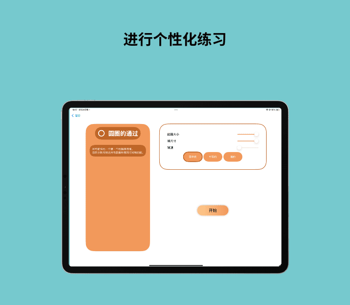 平板电脑用作摆锤支架,让用户锻炼精细动作技能、注意力和空间定位能力。